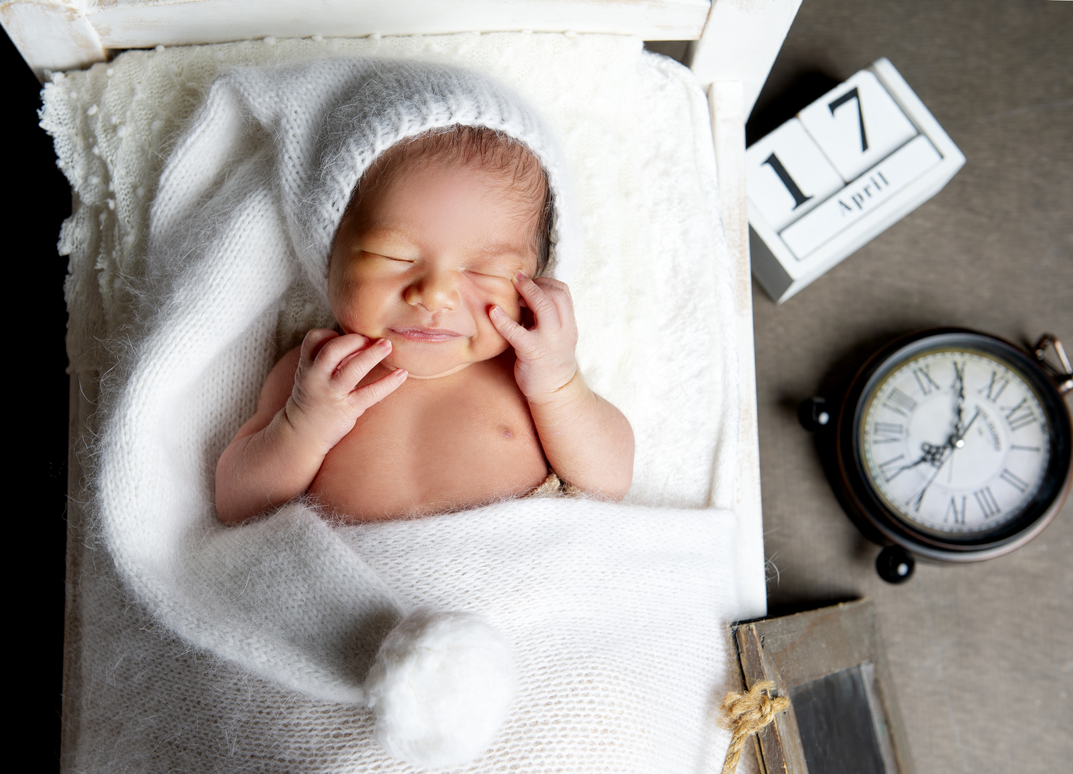 Zum ersten Newbornfotoshooting oder auch Neugeborenen-Fotoshooting erwarten wir Euch mit den ganz kleinen Babys, da die Wickeltechnik in zarten Tüchern aus Strick usw. nur in den ersten Lebenswochen, bevor Baby zu strampeln beginnt, möglich ist.